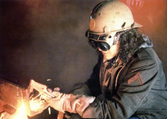 What a feeling! Visual description: Jennifer Beals in Flashdance, welding shit like a badass.